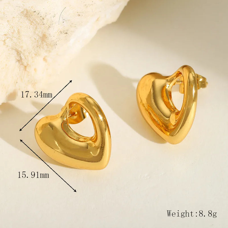 1 Pair Casual Basic Simple Style Heart Shape 304 Stainless Steel 18K Gold Plated Ear Studs