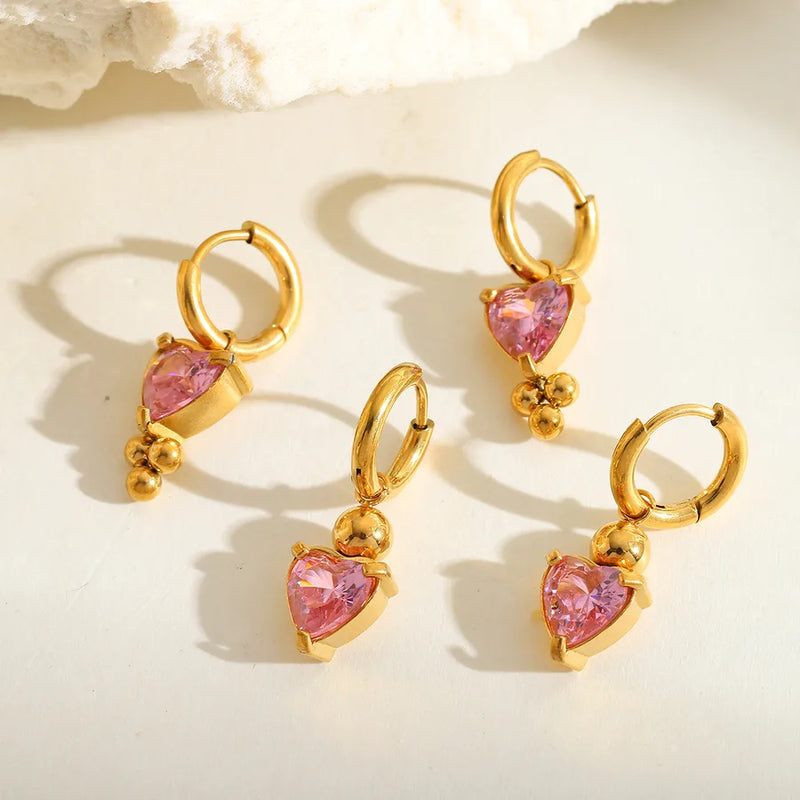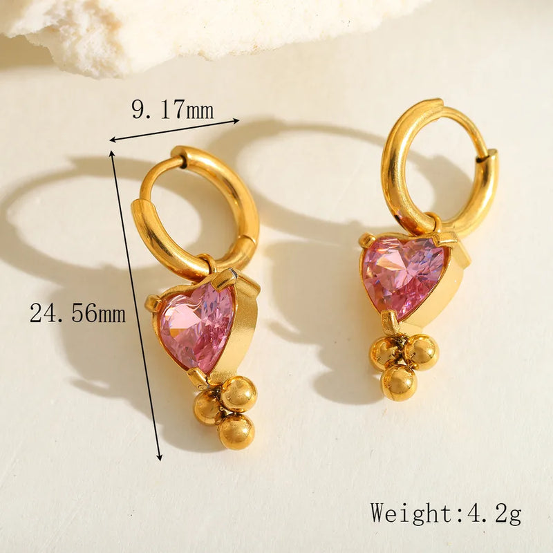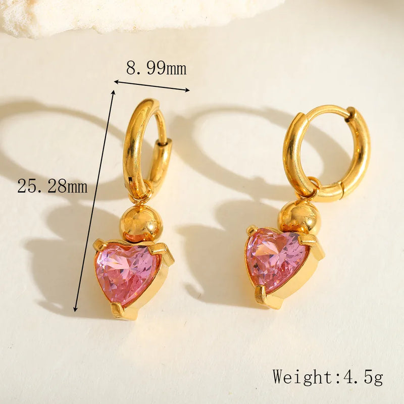 1 Pair Casual Cute Simple Style Geometric Heart Shape Plating Inlay 304 Stainless Steel Zircon 18K Gold Plated Drop Earrings Earrings