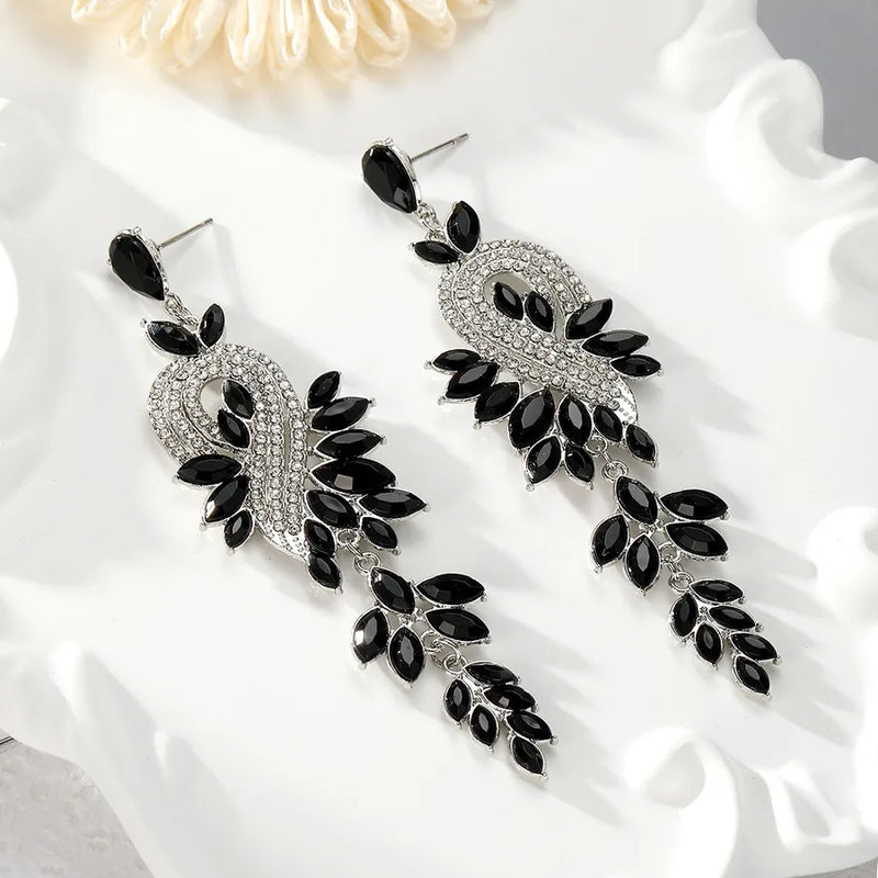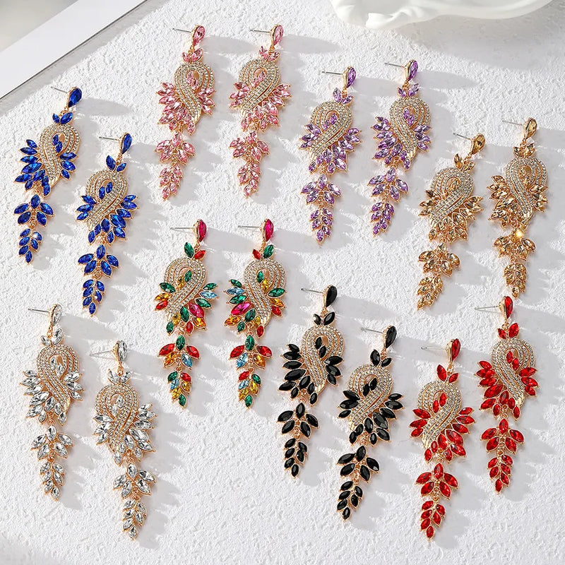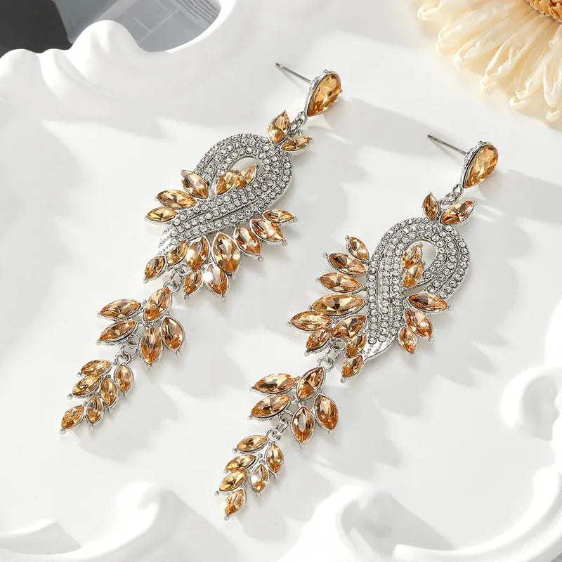1 Pair Casual Elegant Simple Style Flower Inlay Alloy Rhinestones Drop Earrings