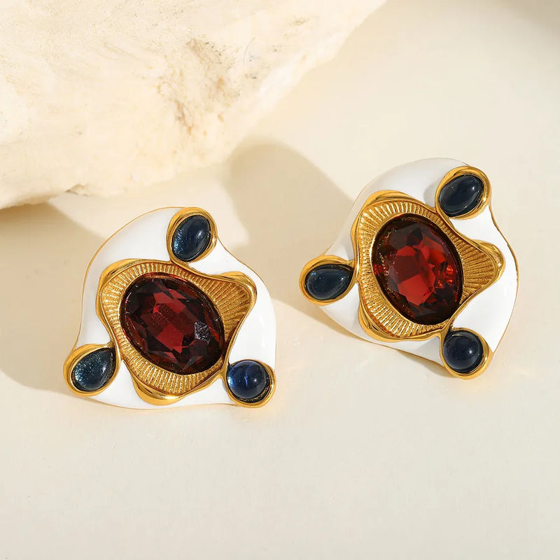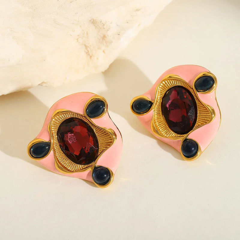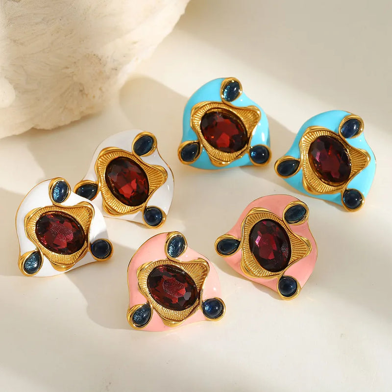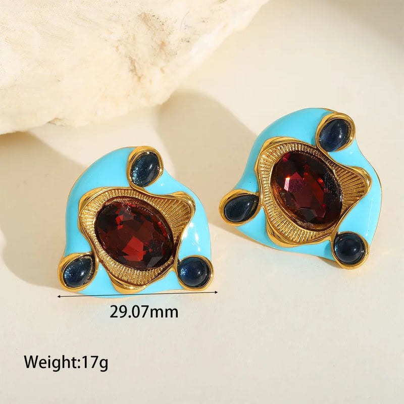 1 Pair Casual Exaggerated Vacation Irregular Circle Enamel 304 Stainless Steel 18K Gold Plated Ear Studs