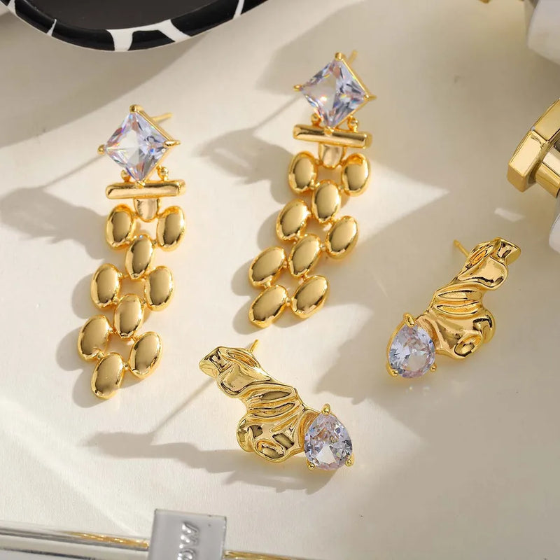 1 Pair Casual Luxurious Artistic Geometric Inlay 304 Stainless Steel Zircon Ear Studs