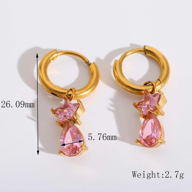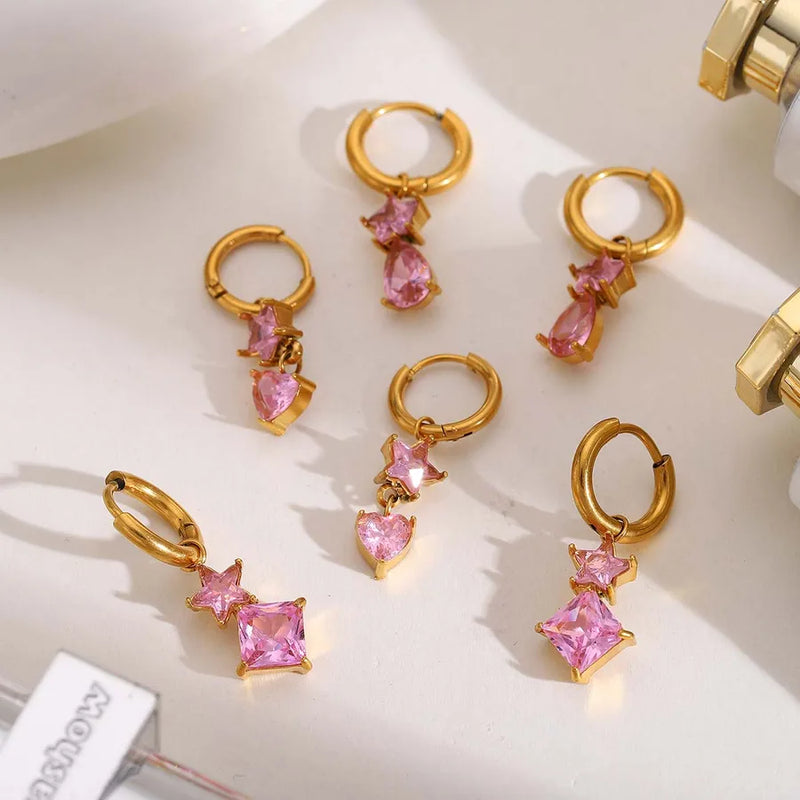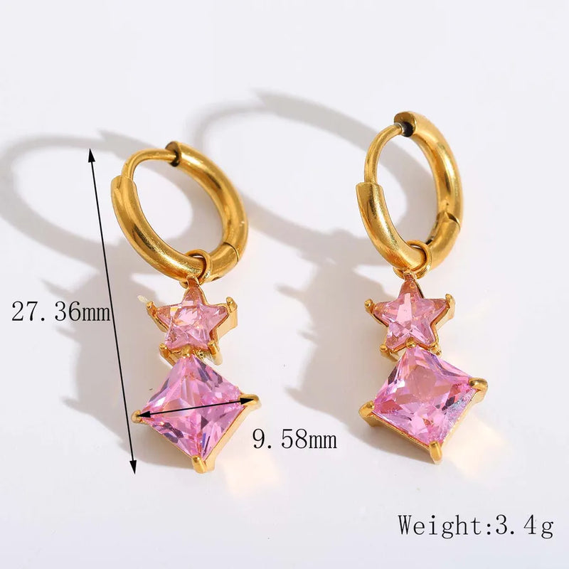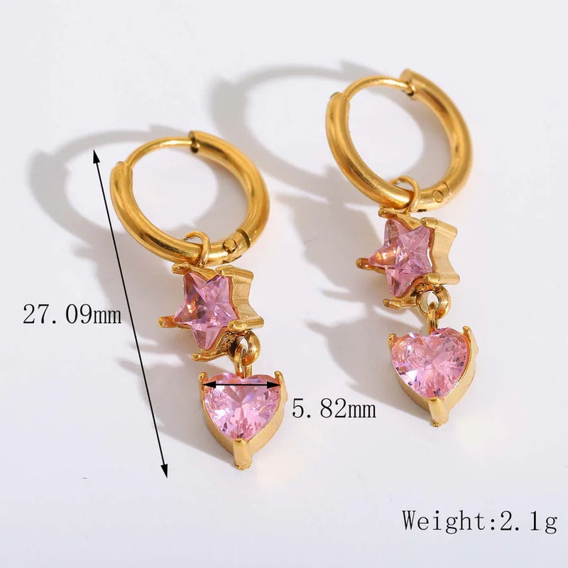 1 Pair Casual Princess Sweet Star Red Heart Plating Inlay 304 Stainless Steel Zircon 18K Gold Plated Dangling Earrings