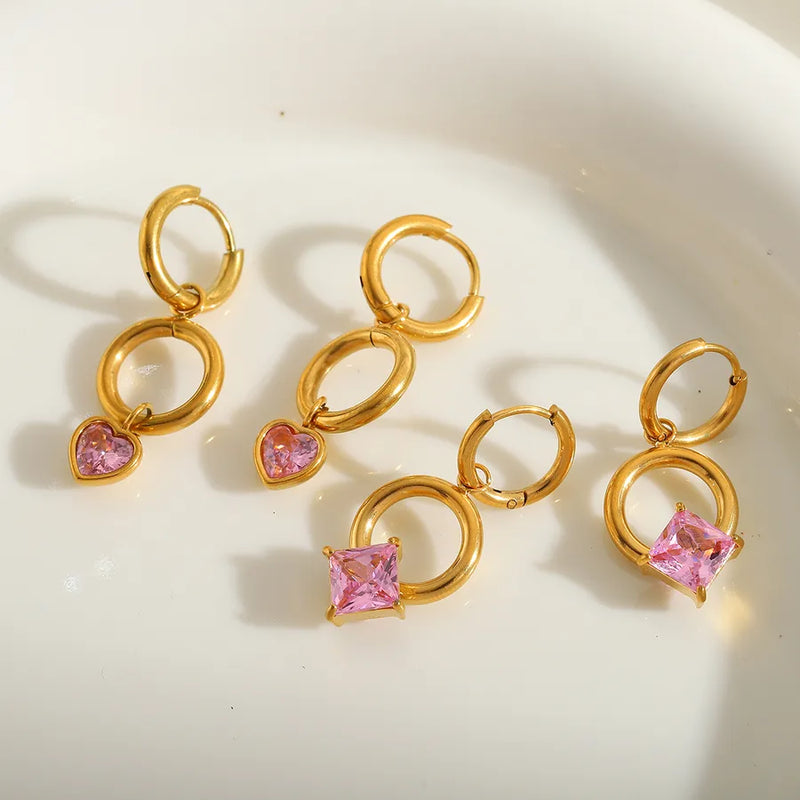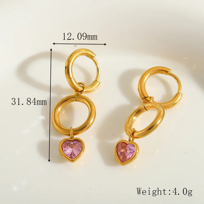 1 Pair Casual Simple Style Artistic Geometric Heart Shape Plating Inlay 304 Stainless Steel Zircon 18K Gold Plated Ear Studs
