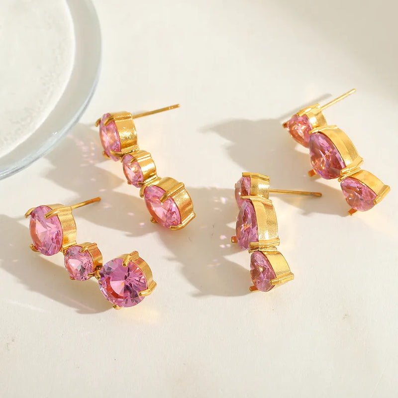 1 Pair Casual Simple Style Artistic Irregular Geometric Heart Shape Plating Inlay 304 Stainless Steel Zircon 18K Gold Plated Ear Studs