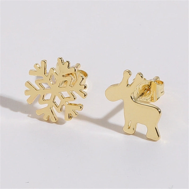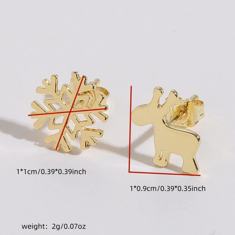 1 Pair Christmas Elegant Simple Style Commute Snowflake Elk Copper 14K Gold Plated Ear Studs