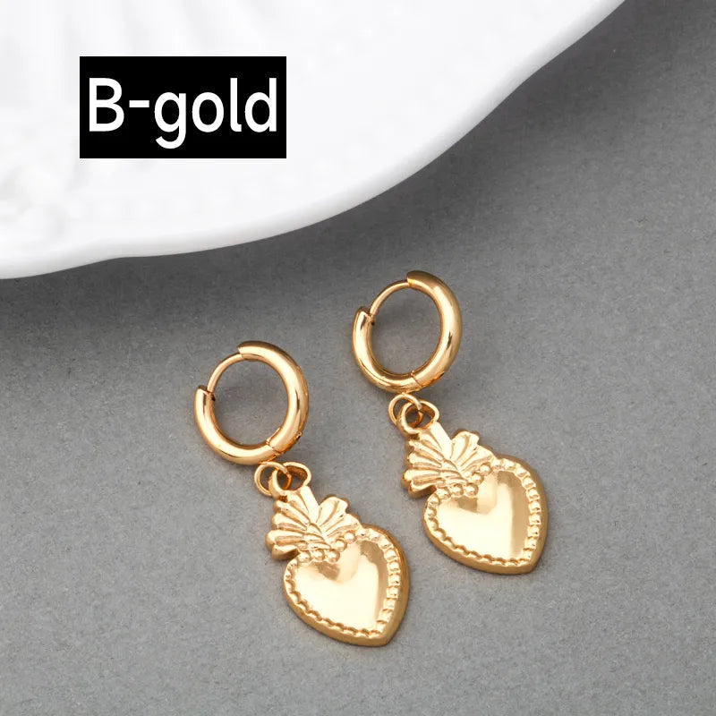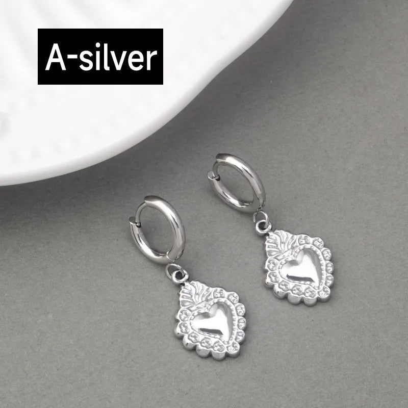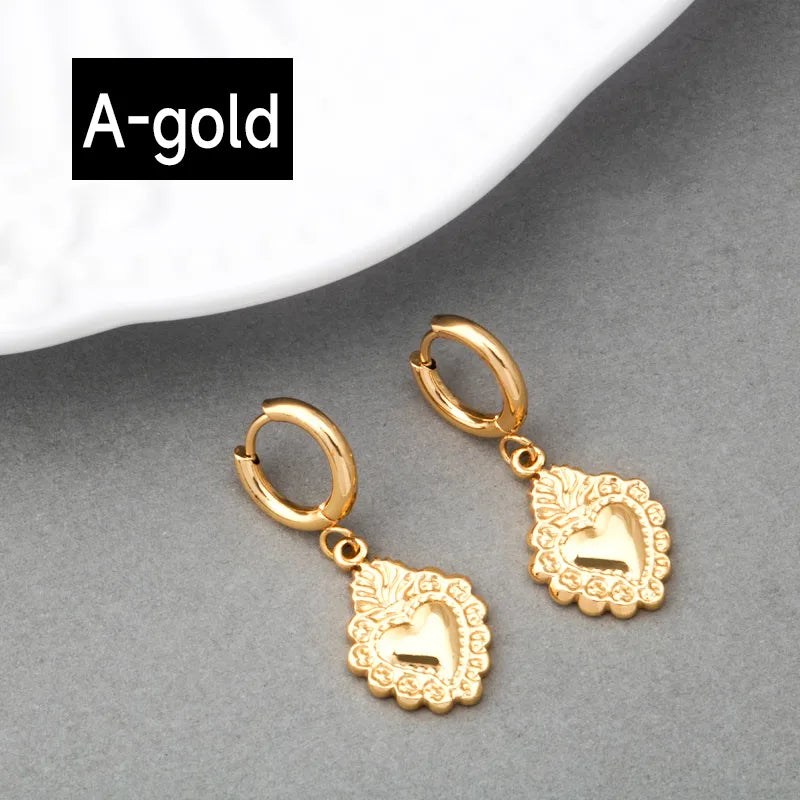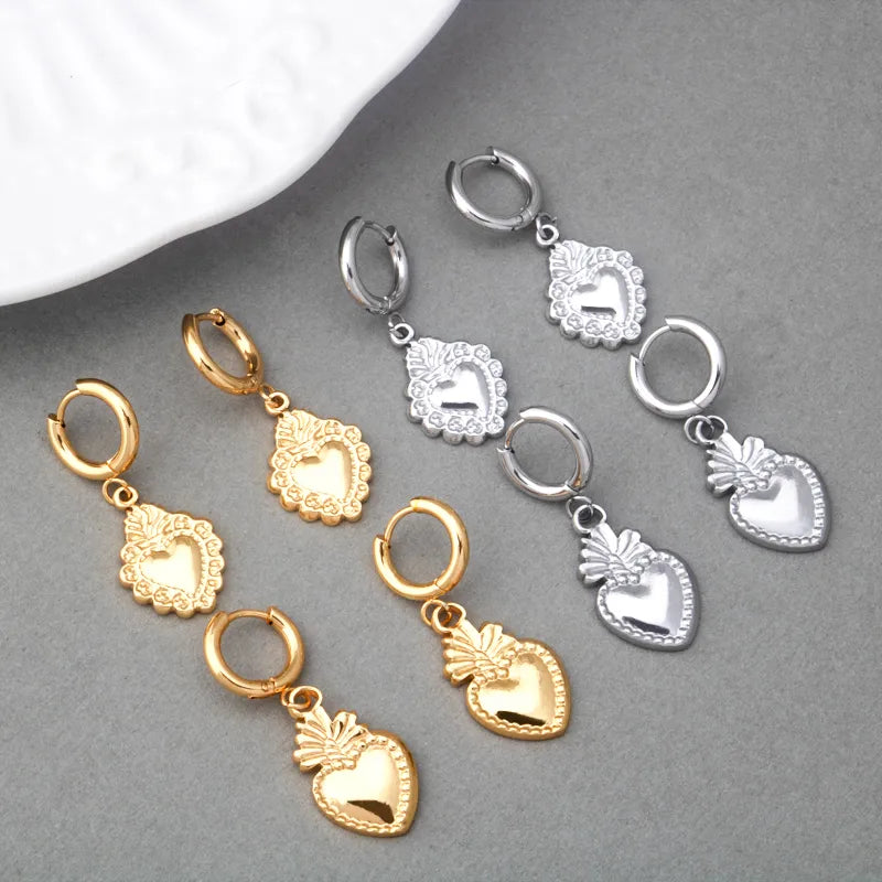 1 Pair Classic Style Heart Shape Titanium Steel Drop Earrings