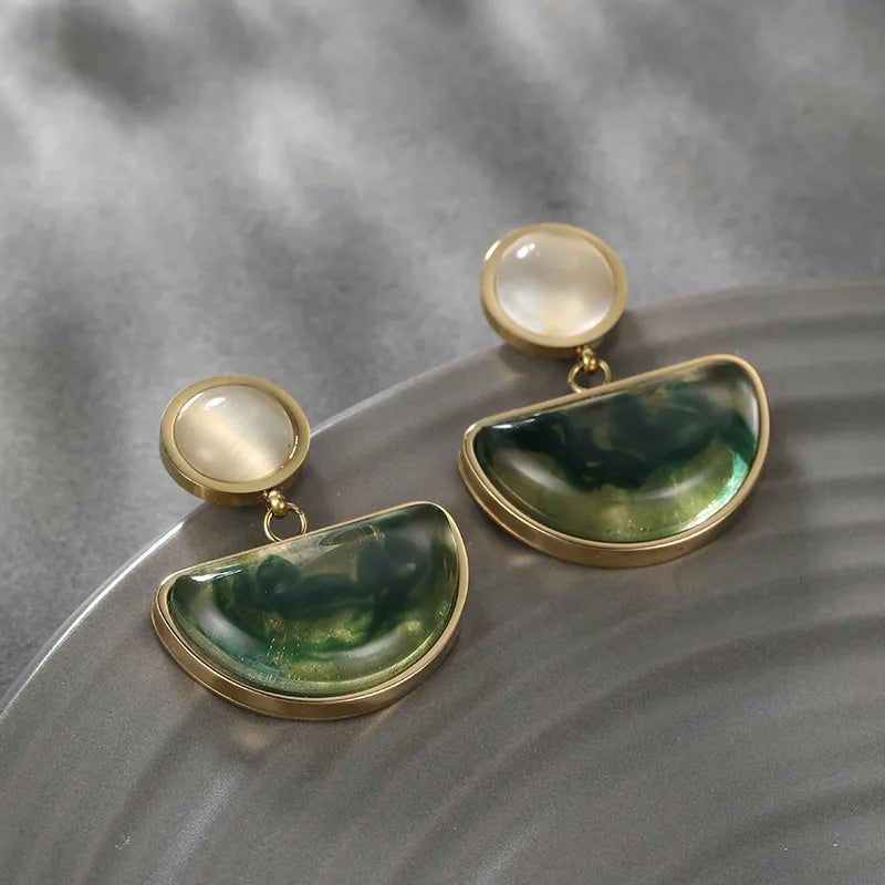 1 Pair Classical Vintage Style Artistic Semicircle Plating Titanium Steel 14K Gold Plated Drop Earrings