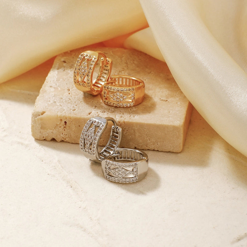 1 Pair Cute Shiny Korean Style Geometric Inlay Copper Zircon K Gold Plated Earrings