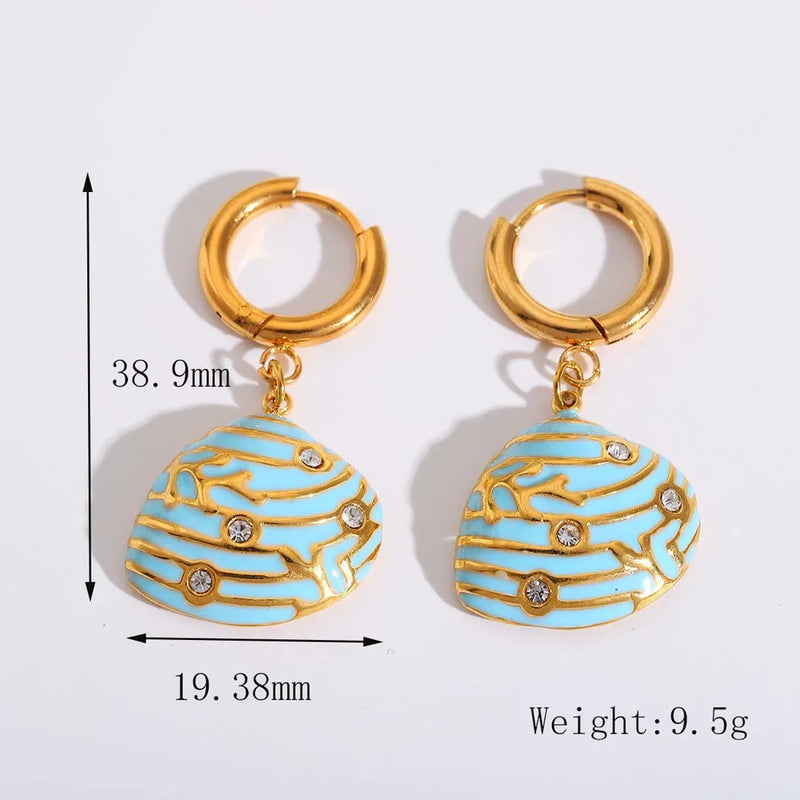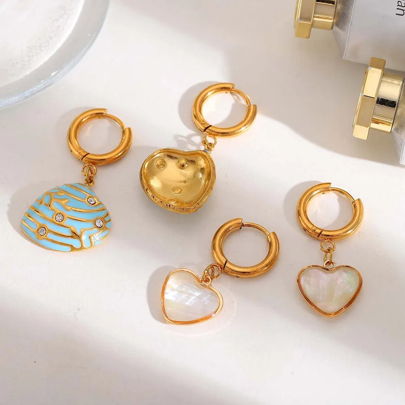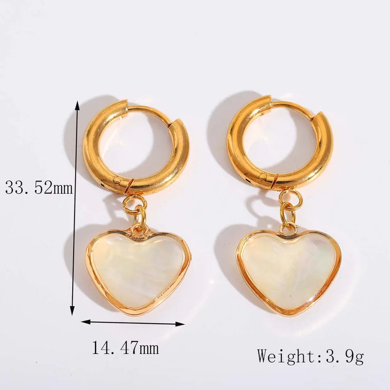 1 Pair Cute Sweet Heart Shape Shell Plating Inlay 304 Stainless Steel Acrylic Zircon 18K Gold Plated Drop Earrings Earrings