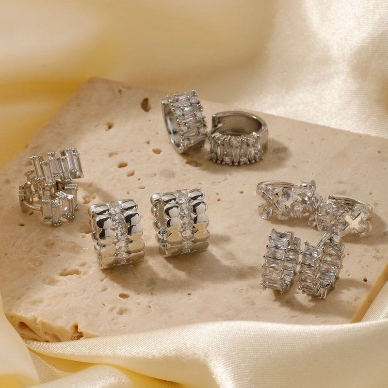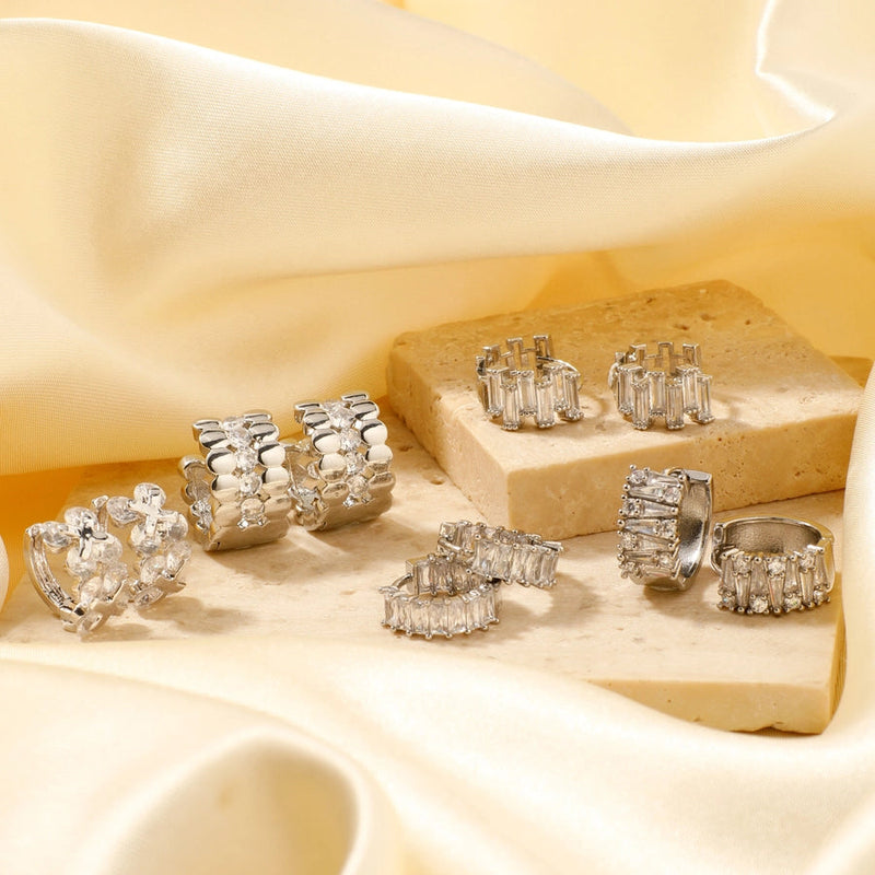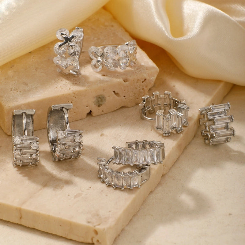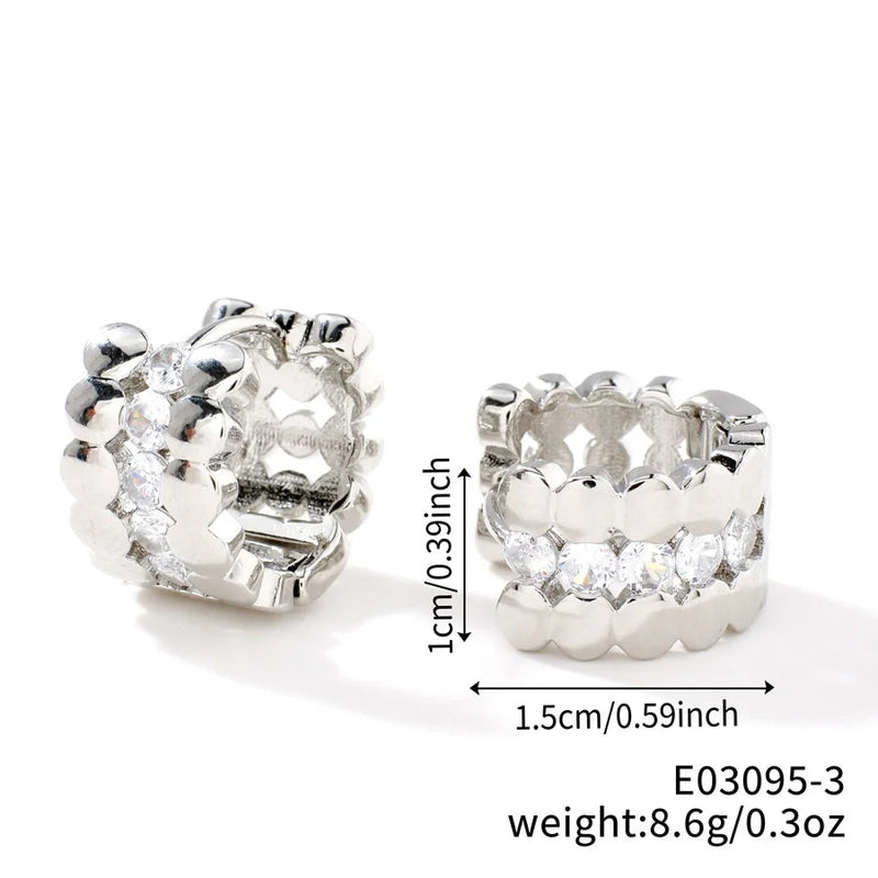 1 Pair Elegant Basic Round Inlay Copper Zircon Rhodium Plated Ear clip