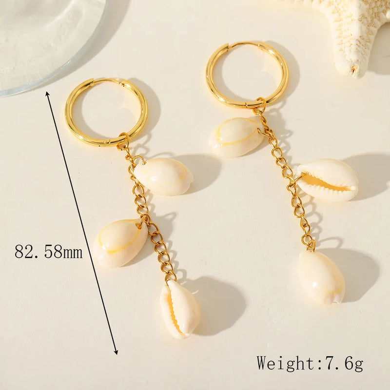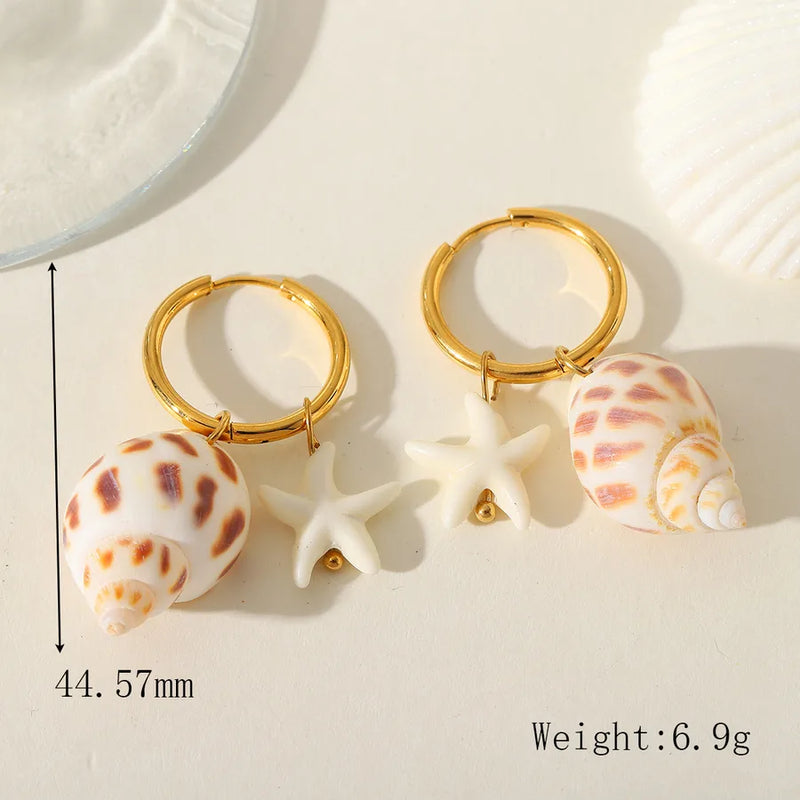 1 Pair Elegant Cute Marine Style Starfish Conch Shell Plating Inlay 304 Stainless Steel 18K Gold Plated Drop Earrings Earrings