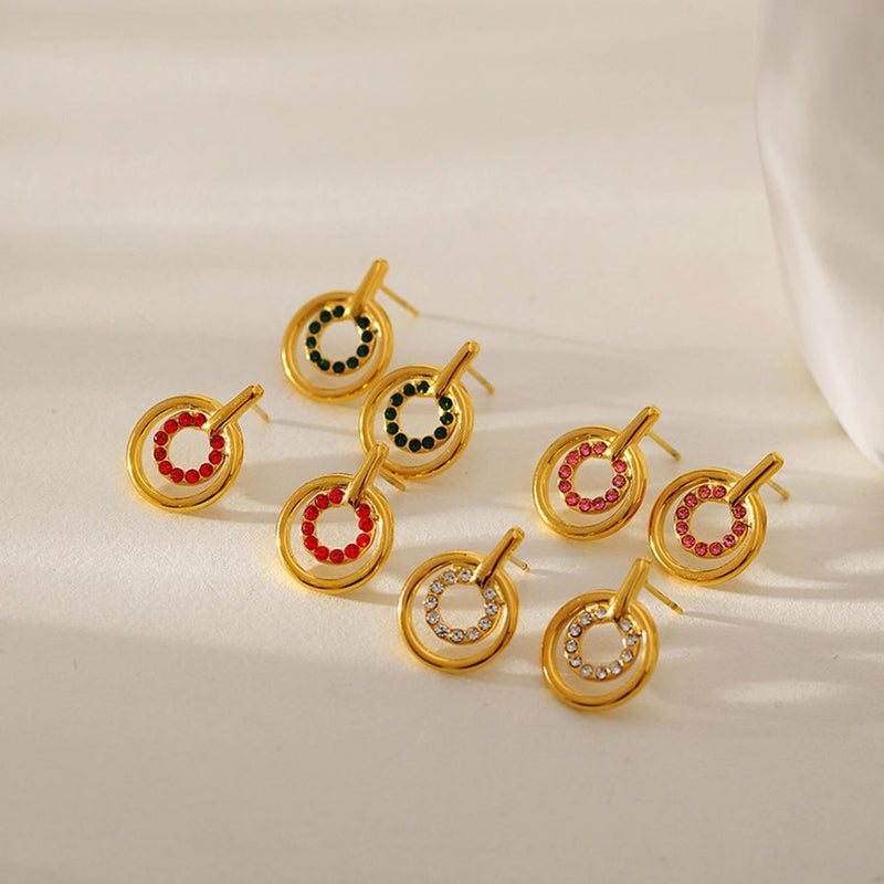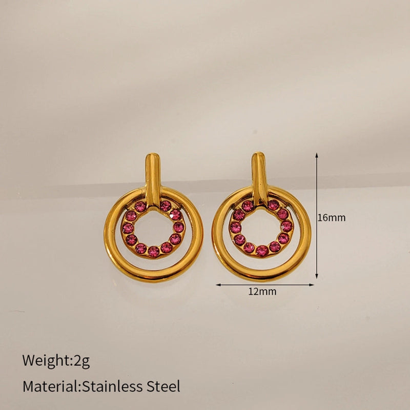 1 Pair Elegant Geometric 304 Stainless Steel Zircon Ear Studs
