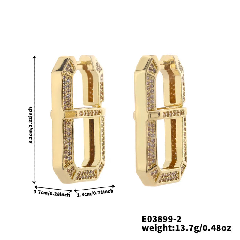 1 Pair Elegant Glam Shiny Number Plating Copper Zircon K Gold Plated Rhodium Plated Ear hook