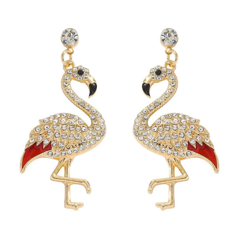 1 Pair Elegant Lady Advanced Sense Flamingo Alloy Drop Earrings