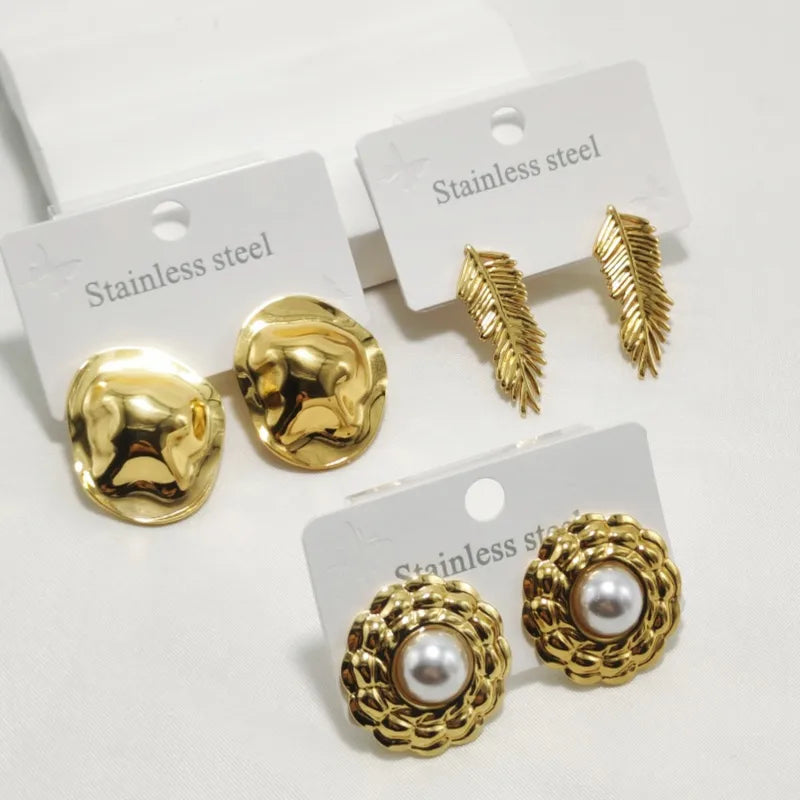 1 Pair Elegant Lady Commute Leaves 304 Stainless Steel 18K Gold Plated Butterfly Backs Ear Studs