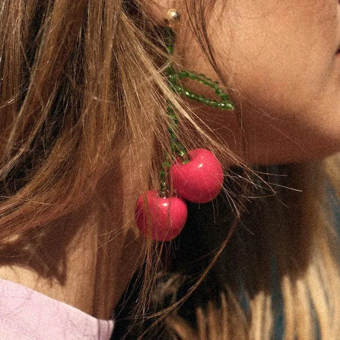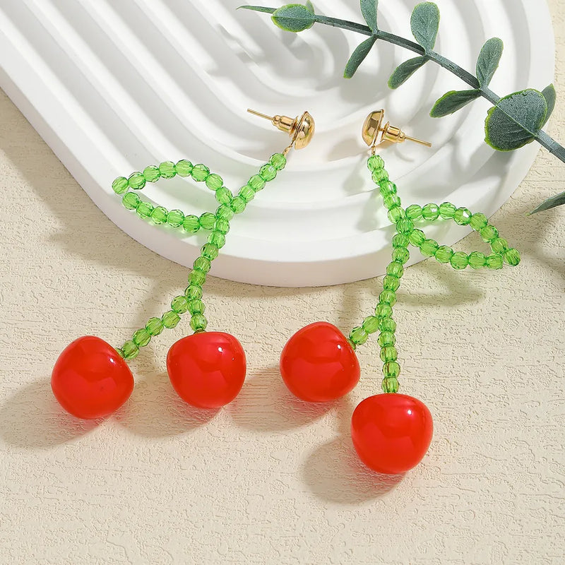 1 Pair Elegant Lady Pastoral Leaf Cherry Resin Seed Bead Drop Earrings