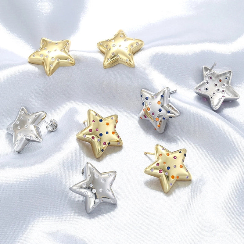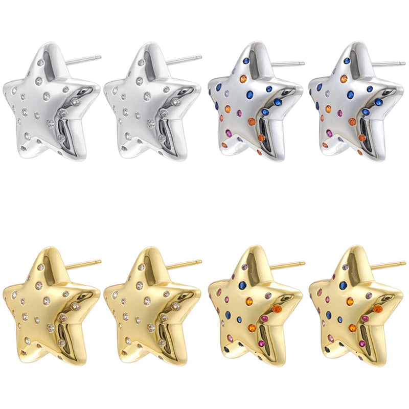 1 Pair Elegant Lady Streetwear Pentagram Plating Inlay Copper Zircon 18K Gold Plated Ear Studs