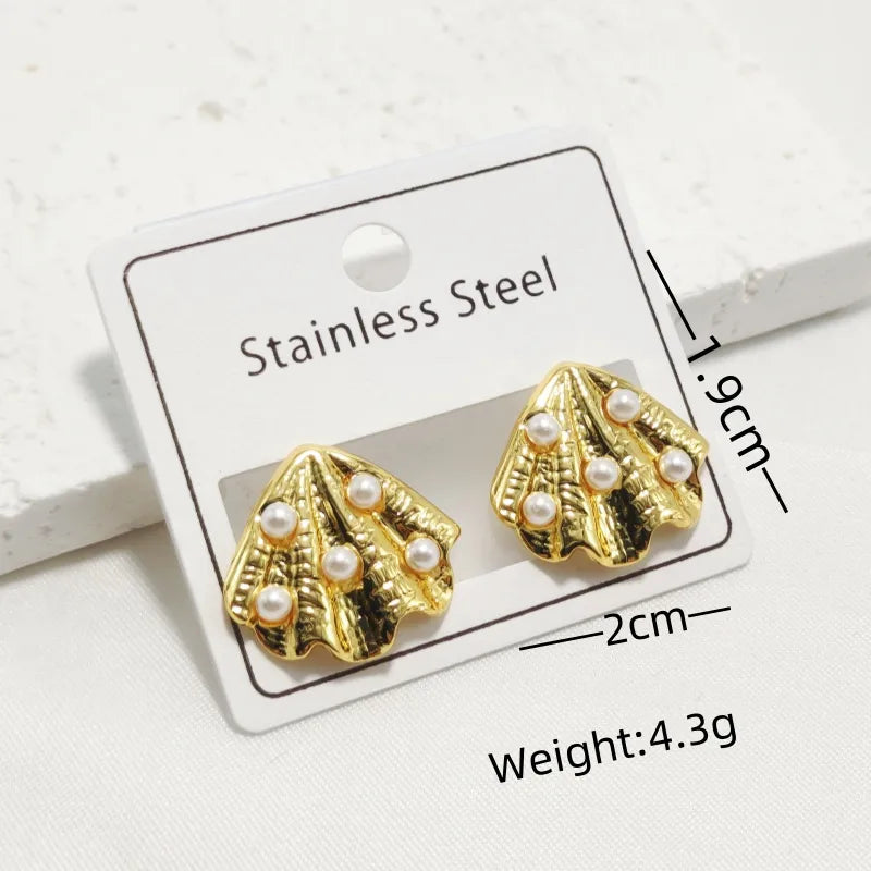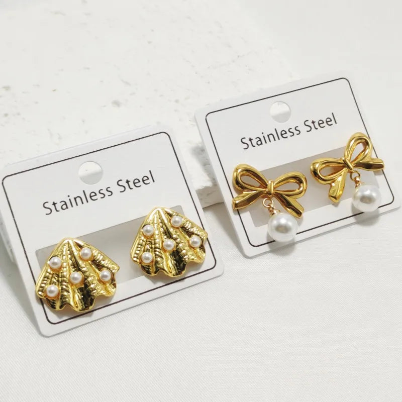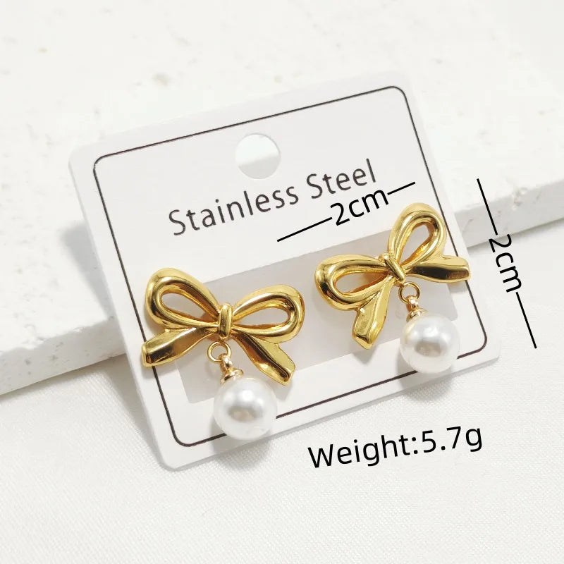 1 Pair Elegant Luxurious Commute Bow Knot Shell 304 Stainless Steel 18K Gold Plated Drop Earrings