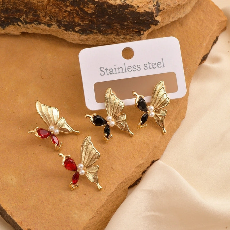 1 Pair Elegant Luxurious Shiny Butterfly 304 Stainless Steel 18K Gold Plated Ear Studs