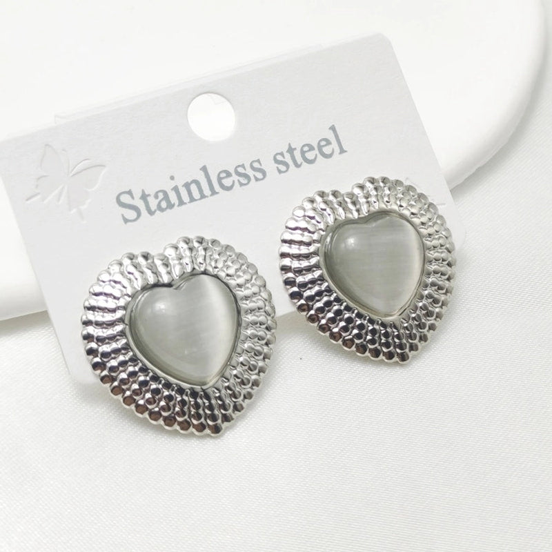 1 Pair Elegant Retro Commute Heart Shape 304 Stainless Steel Ear Studs