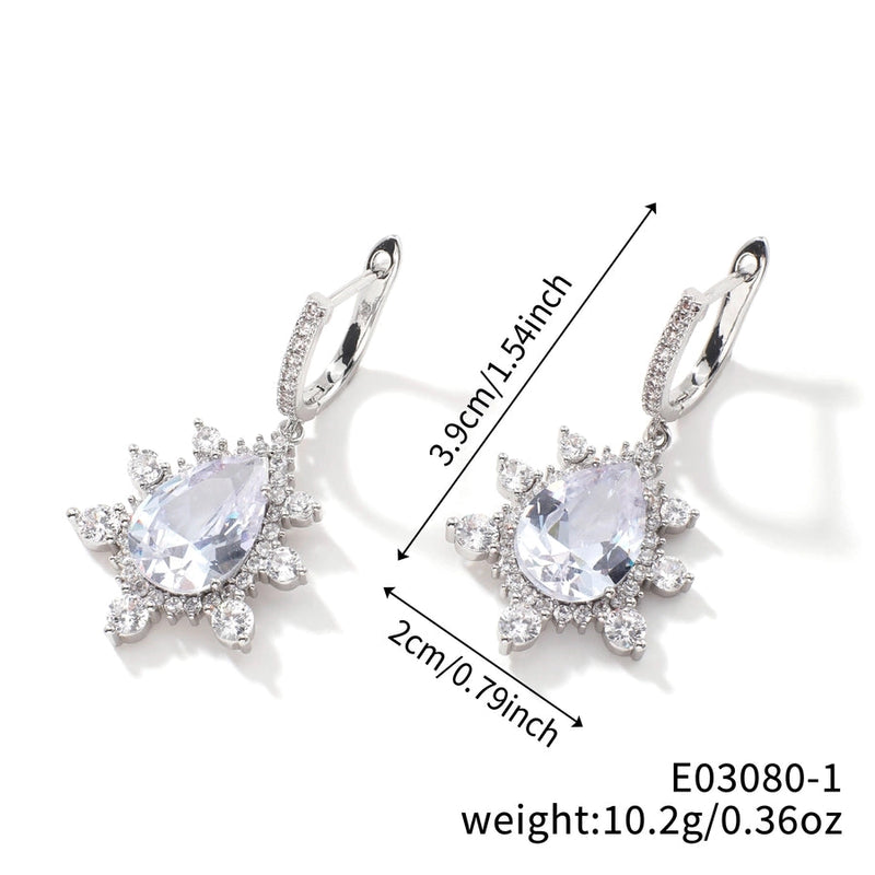 1 Pair Elegant Shiny Korean Style Geometric Water Droplets Flower Inlay Copper Glass Zircon K Gold Plated Rhodium Plated Ear clip