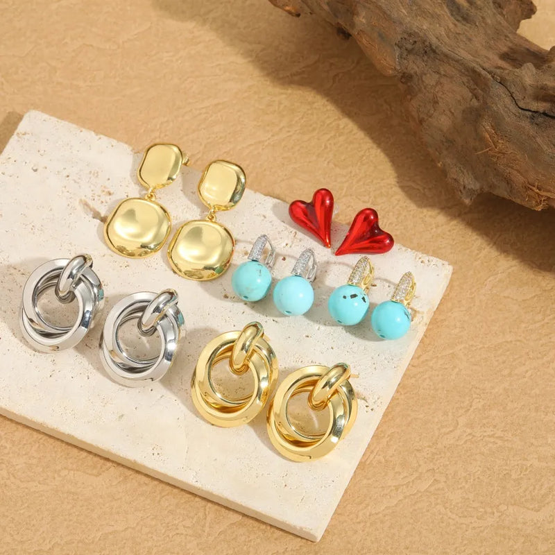 1 Pair Elegant Simple Style Commute Heart Shape Enamel Inlay Copper Zircon 14K Gold Plated Ear Studs