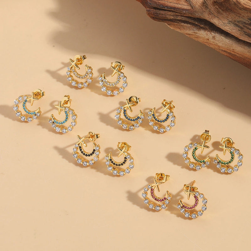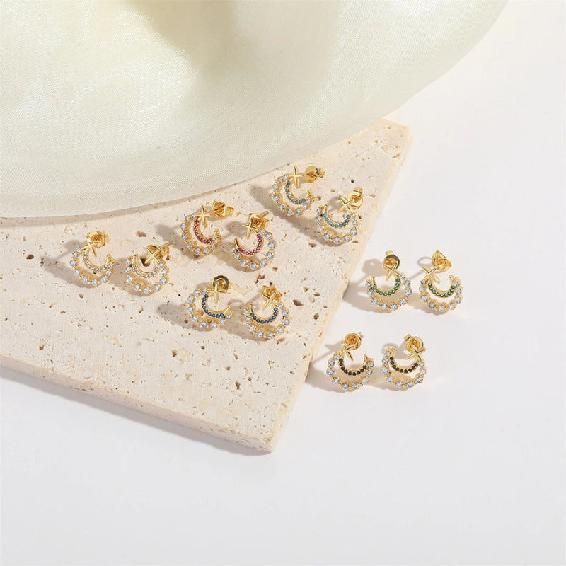 1 Pair Elegant Simple Style Commute Moon Copper Zircon 14K Gold Plated Ear Studs