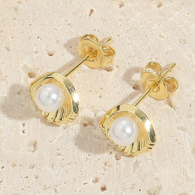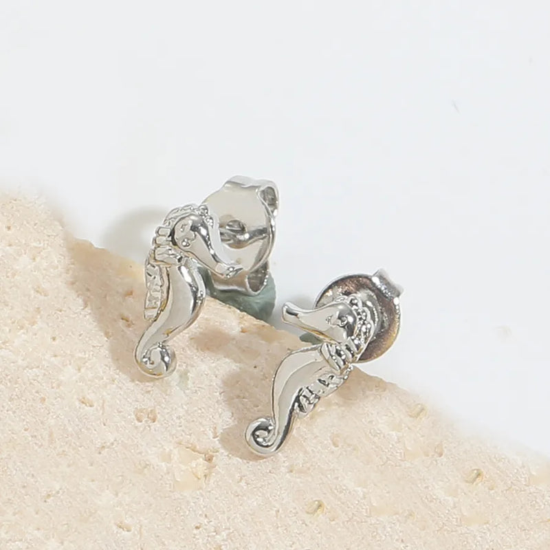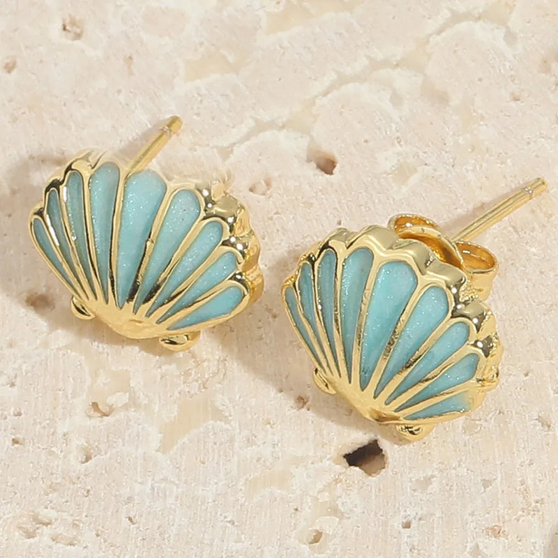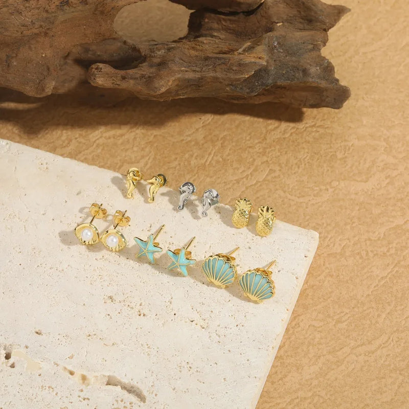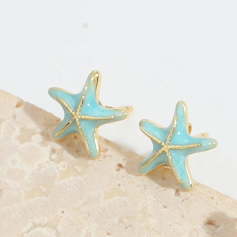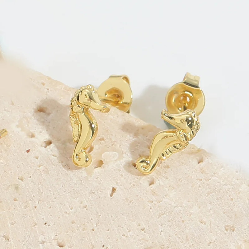 1 Pair Elegant Simple Style Commute Starfish Hippocampus Shell Enamel Inlay Copper Zircon 14K Gold Plated Ear Studs