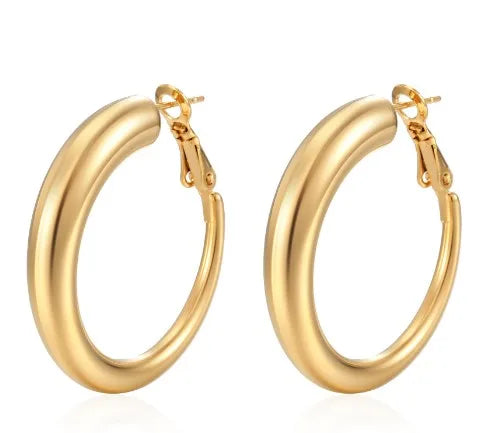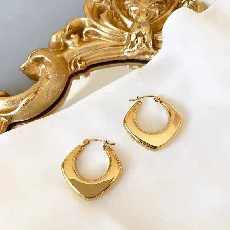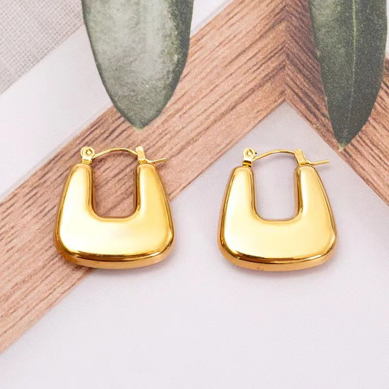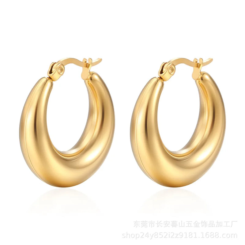 Bold C- Shaped Hollow Earrings Gold MS-019