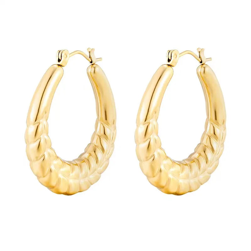 Oval Hollow Welding Pin Earrings Gold MS-017