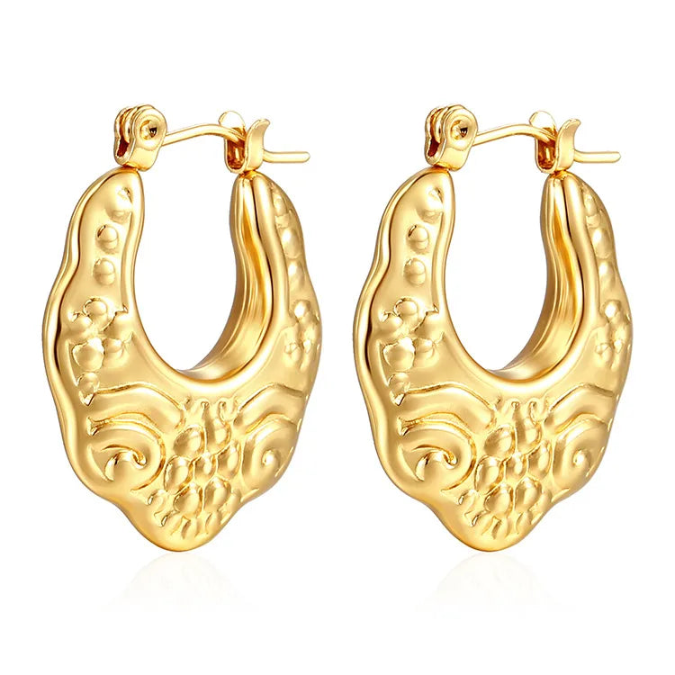 Beating Pattern Semicircle Hollow Earrings Steel Color