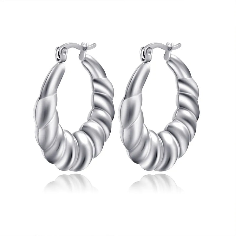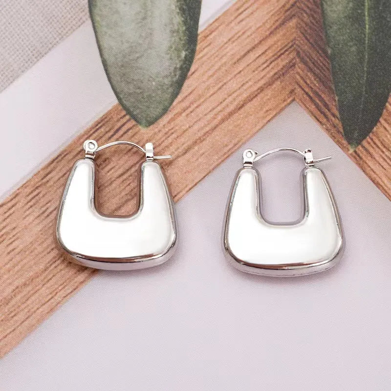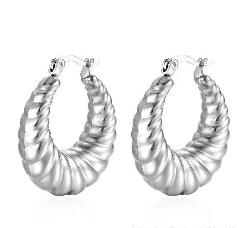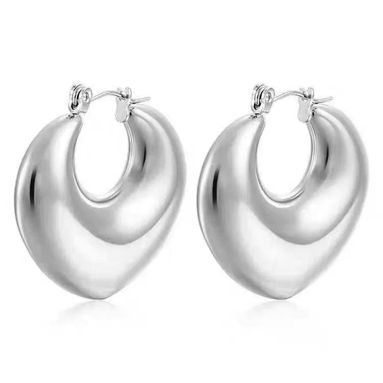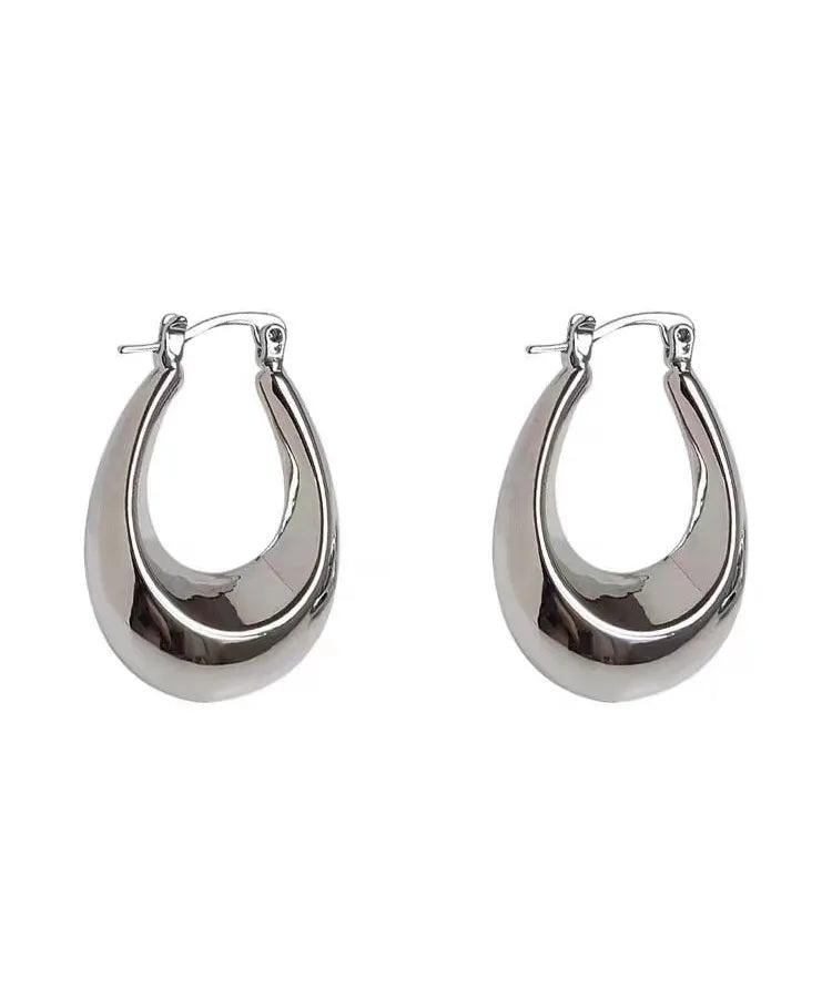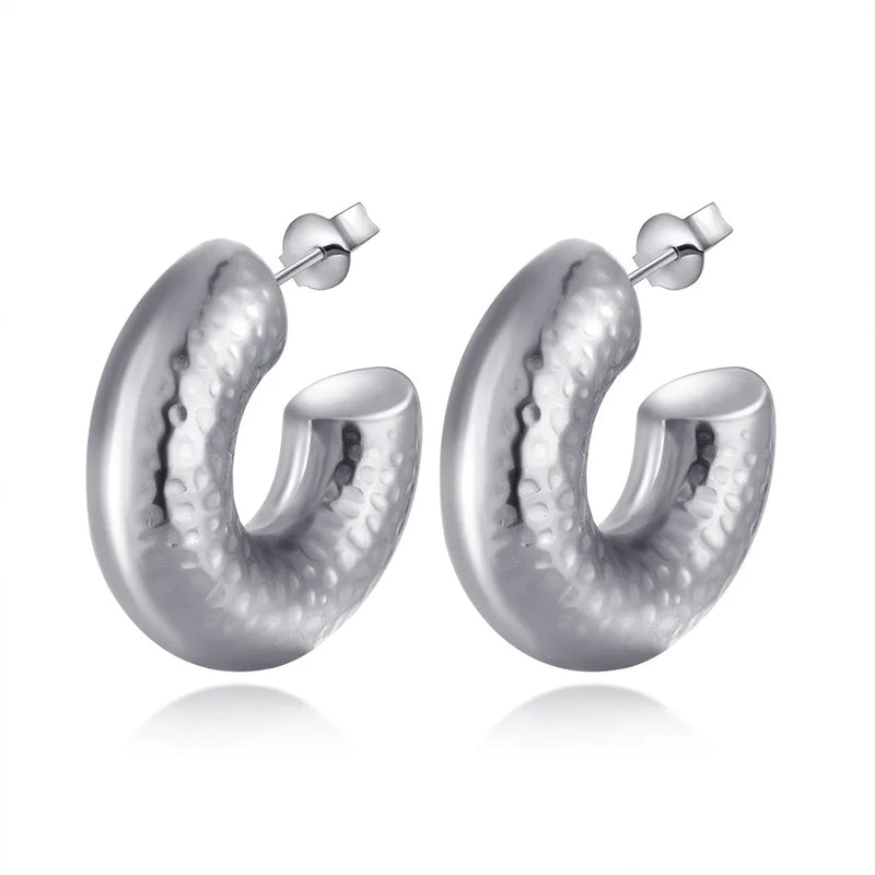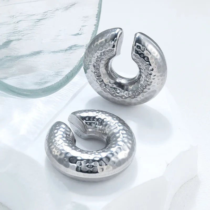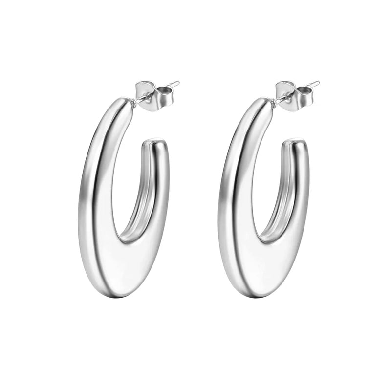 Bold C- Shaped Hollow Earrings Steel Color MS-019