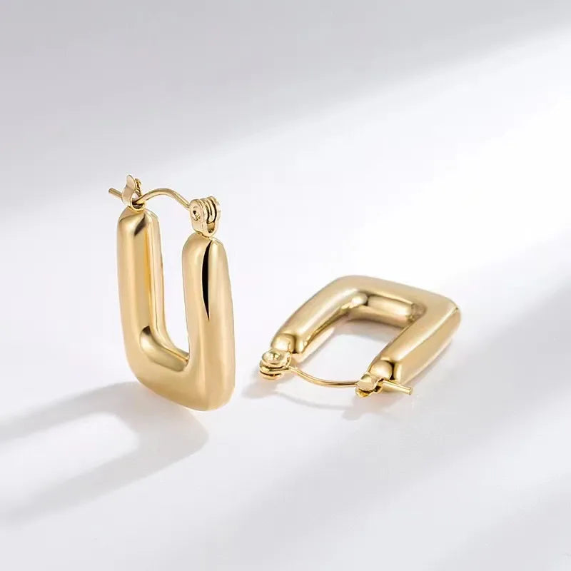 1 Pair Fashion Solid Color Plating 304 Stainless Steel 18K Gold Plated Earrings