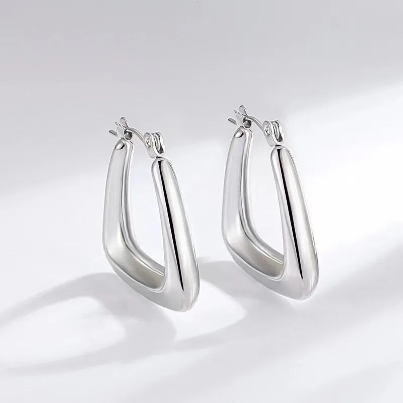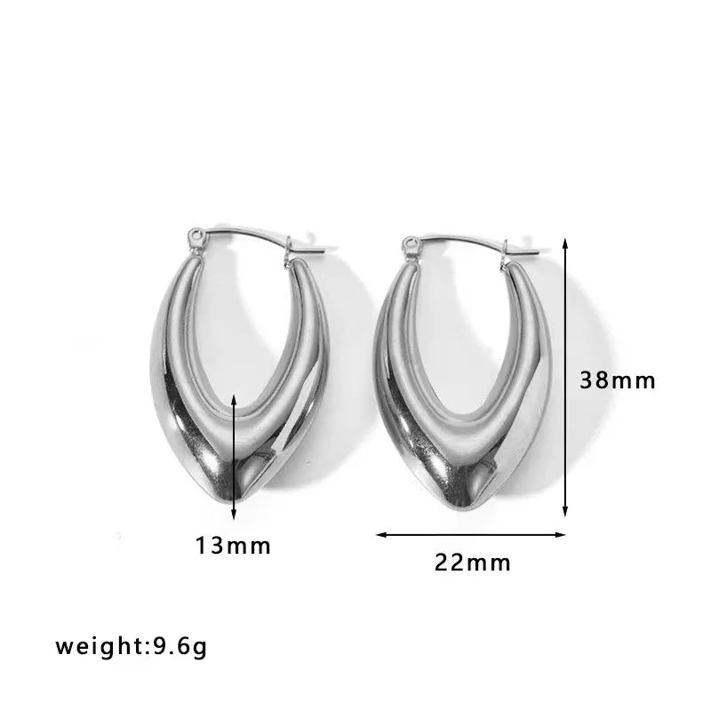 Oval Pointed Hollow Earrings Steel Color MS-007