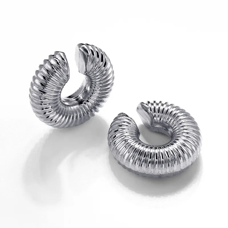 Thread Hollow C- Shaped Earrings Steel Color MS-112