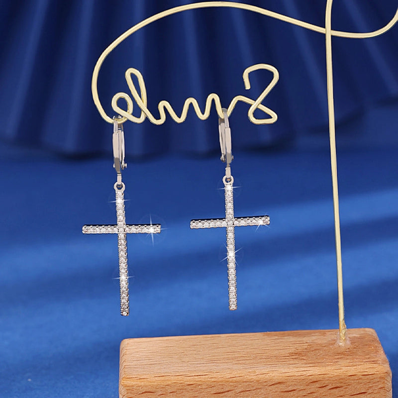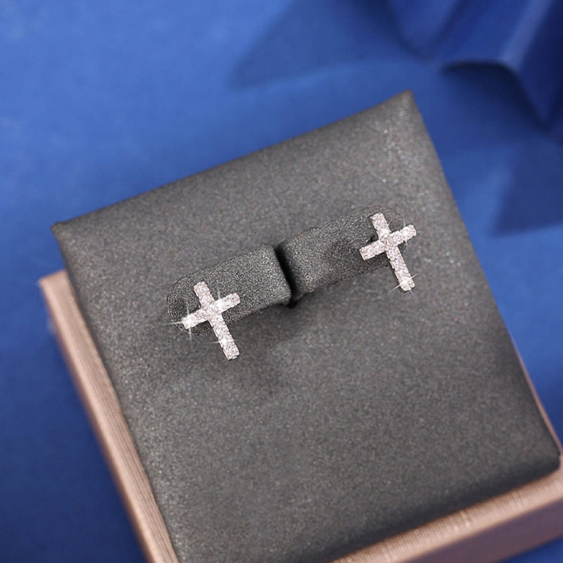 1 Pair Hip-Hop Simple Style Cool Style Cross Copper Zircon Imitation Gold Ear Studs