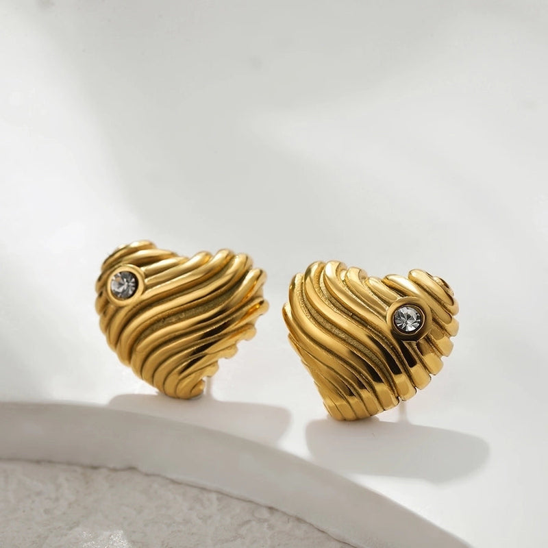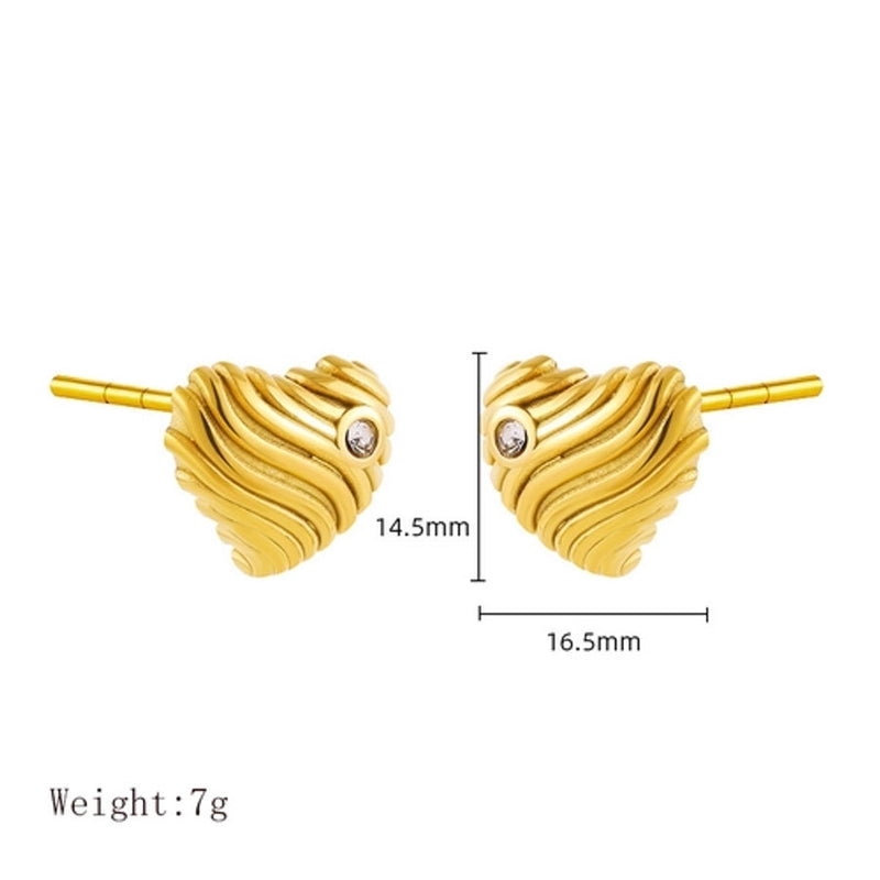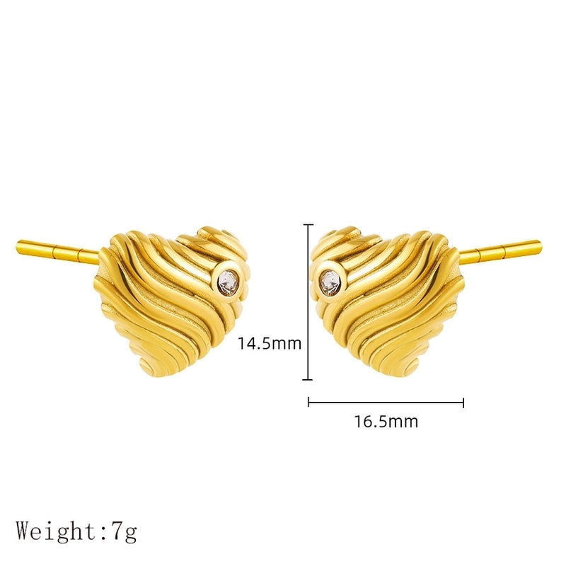 1 Pair IG Style Basic French Style Red Heart Inlay 304 Stainless Steel Zircon 18K Gold Plated Ear Studs