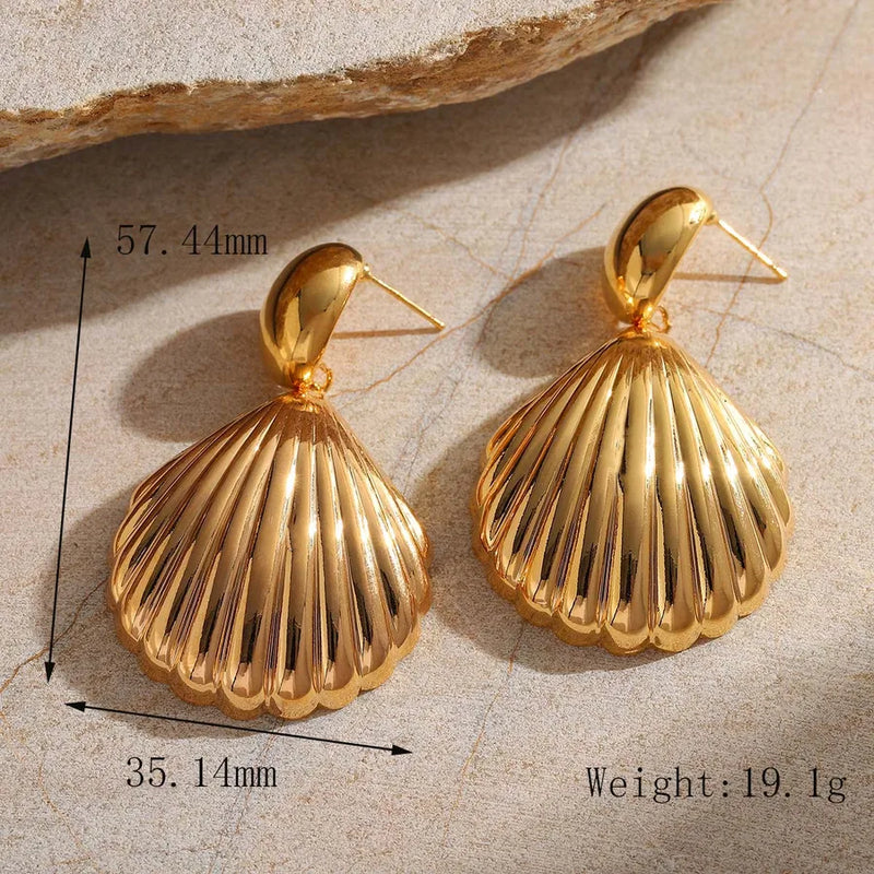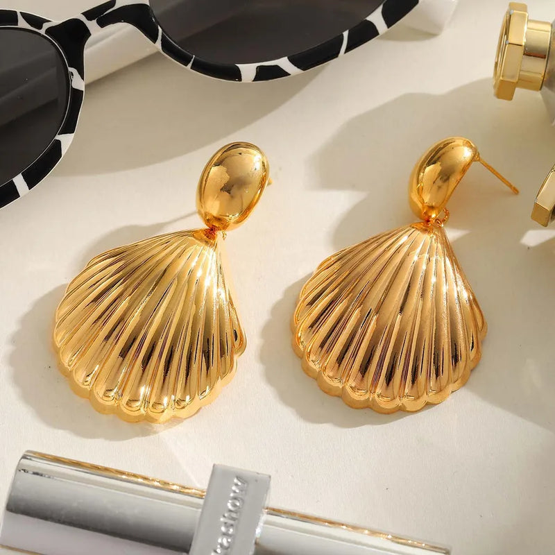 1 Pair IG Style Casual Beach Scallop Copper 18K Gold Plated Ear Studs