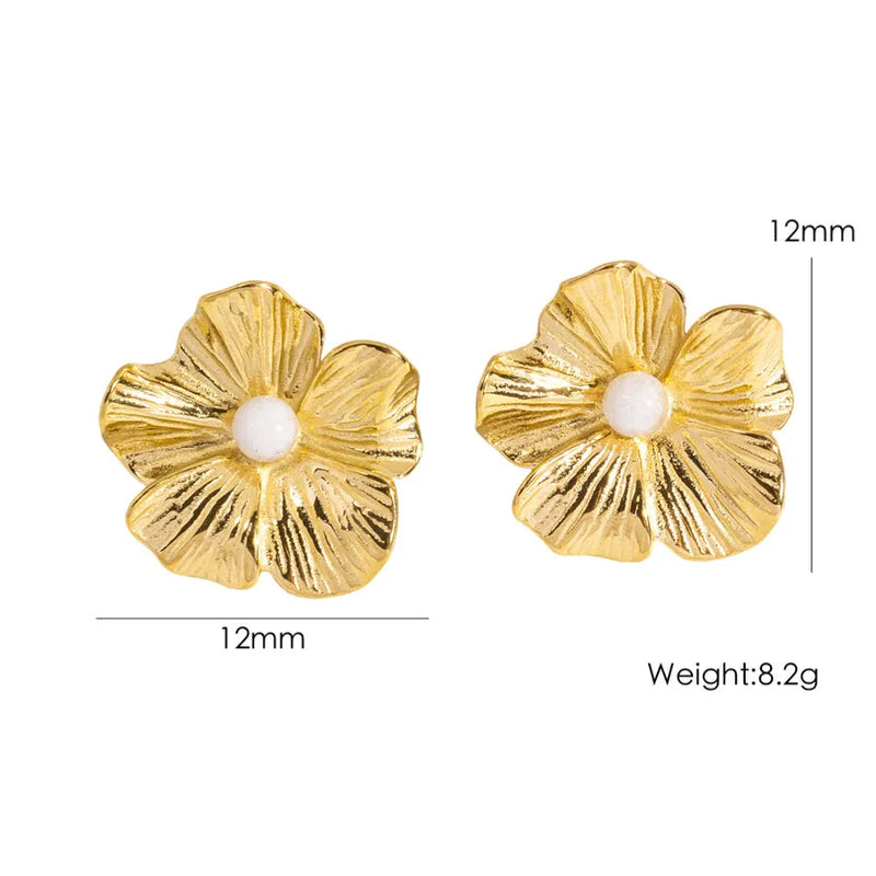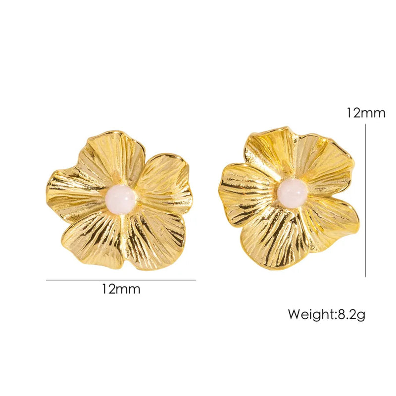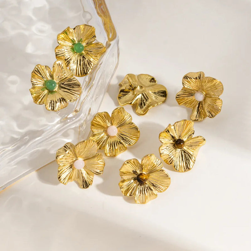 1 Pair IG Style Elegant Modern Style Flower Inlay 304 Stainless Steel Natural Stone 14K Gold Plated Ear Studs