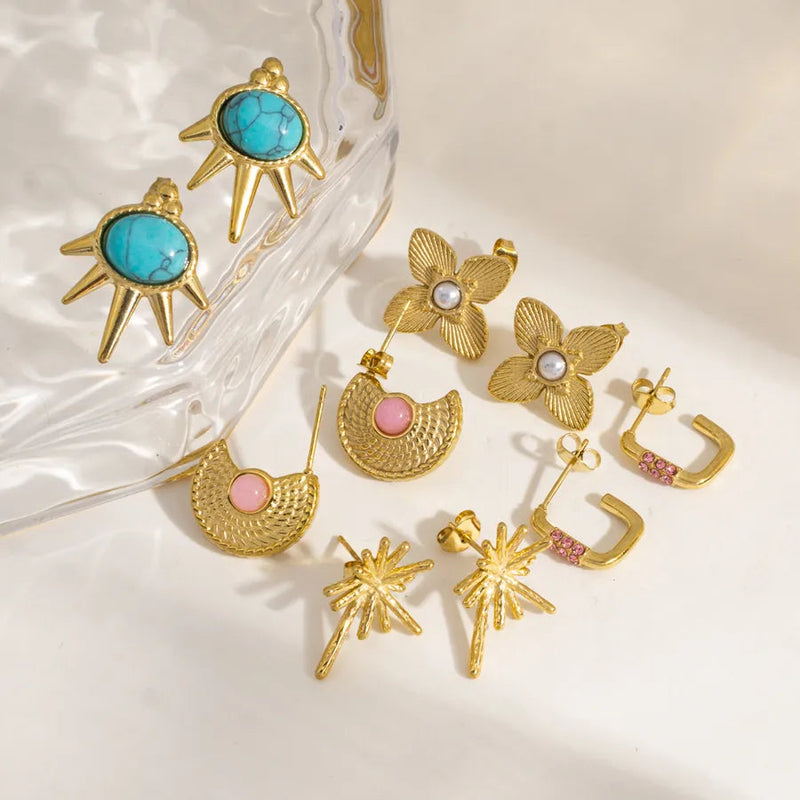 1 Pair IG Style Modern Style Geometric Inlay 304 Stainless Steel Natural Stone 14K Gold Plated Ear Studs