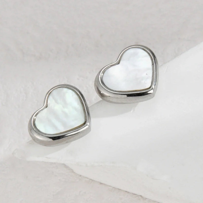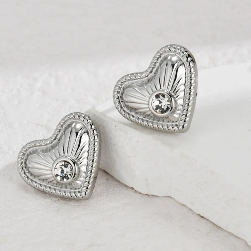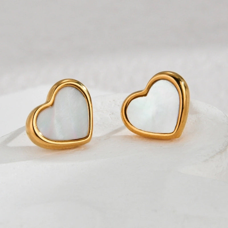 1 Pair IG Style Sweet Heart Shape Inlay 304 Stainless Steel Shell Zircon 18K Gold Plated Ear Studs