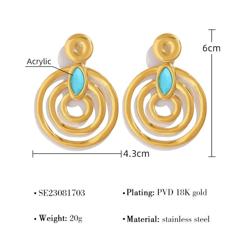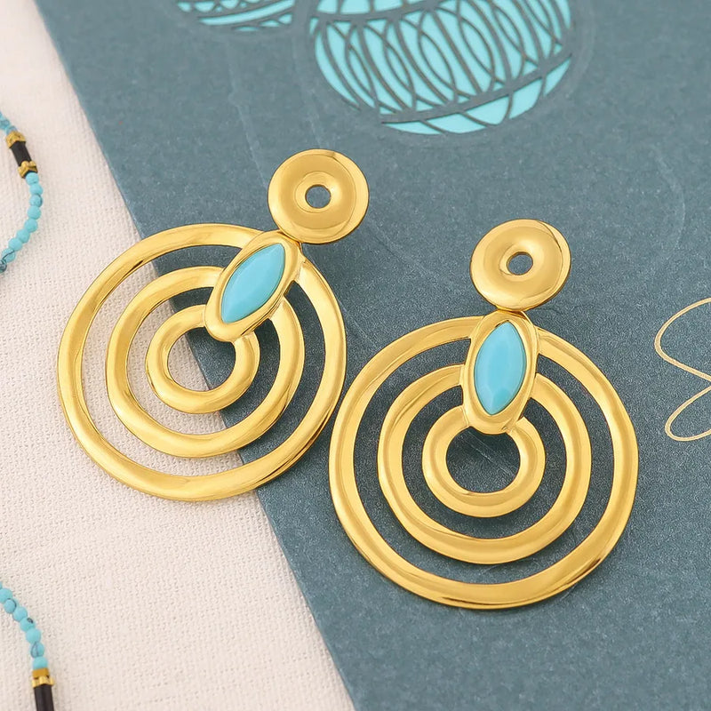 1 Pair IG Style Vacation French Style Circle Plating 304 Stainless Steel Natural Stone December Birthstone Turquoise 18K Gold Plated Earrings