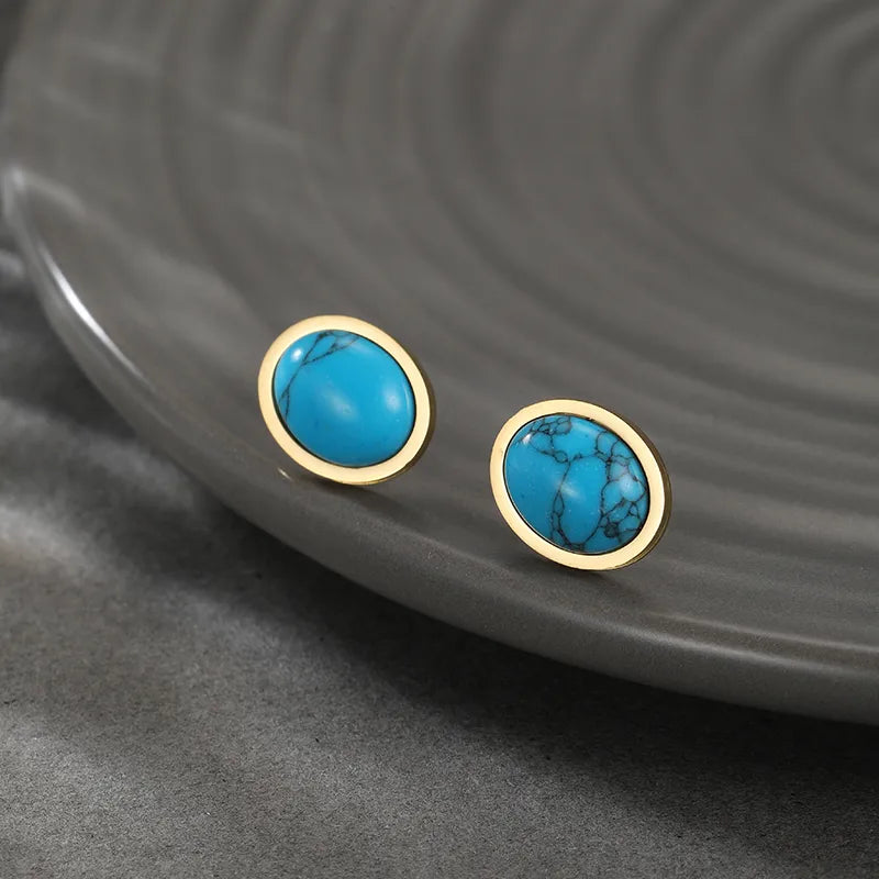1 Pair Lady Simple Style Artistic Oval Plating Titanium Steel 14K Gold Plated Ear Studs
