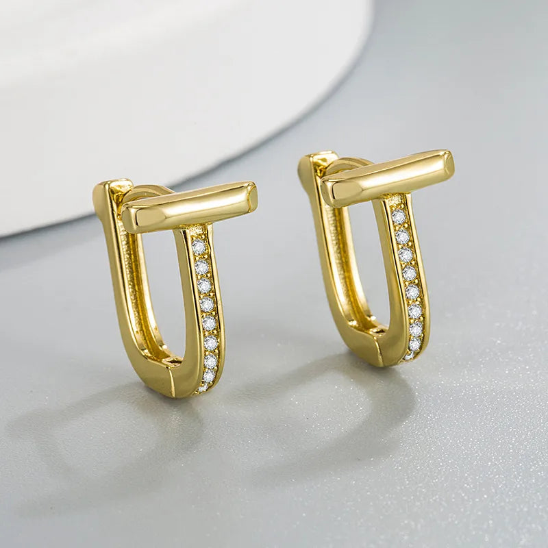 1 pair lady u shape polishing plating inlay copper artificial diamond ear studs