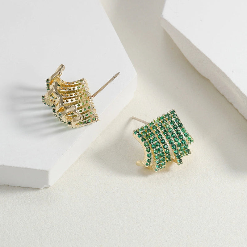 1 Pair Luxurious Romantic Geometric Artificial Gemstones Copper Zircon Ear Studs