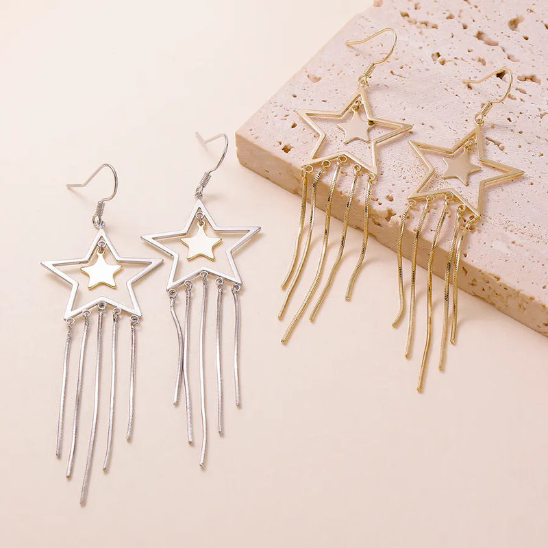 1 Pair Luxurious Simple Style Commute Pentagram Copper Drop Earrings