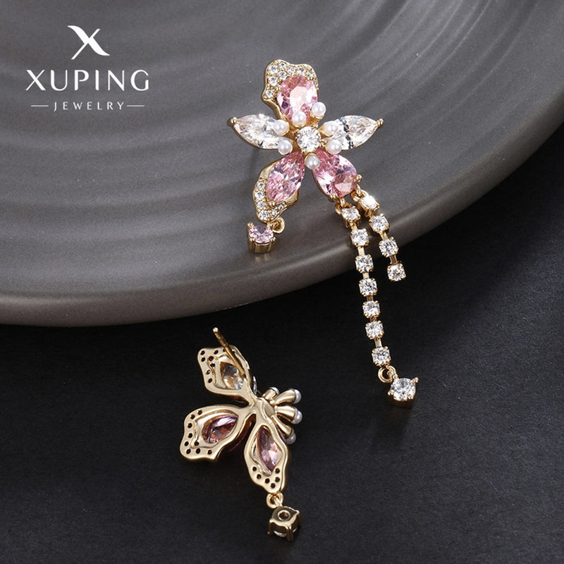 1 Pair Luxurious Sweet Tassel Flower Plating Copper Artificial Gemstones 18K Gold Plated Drop Earrings