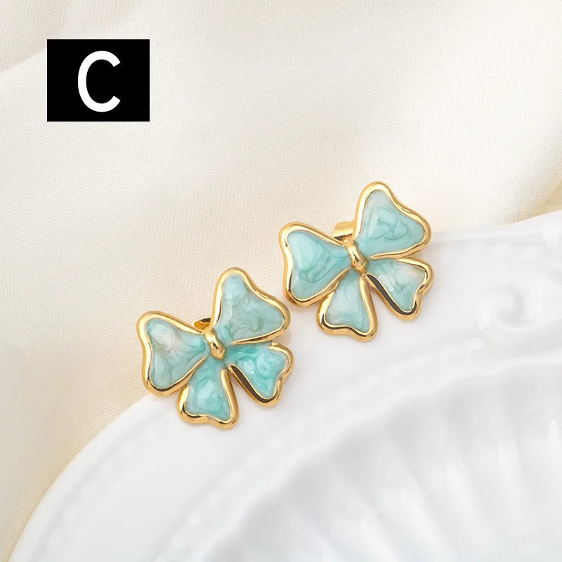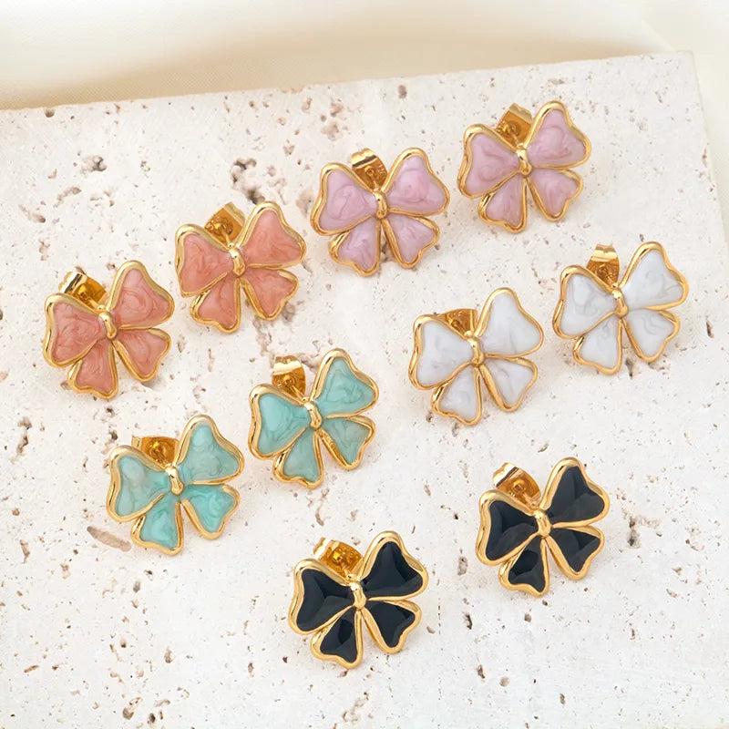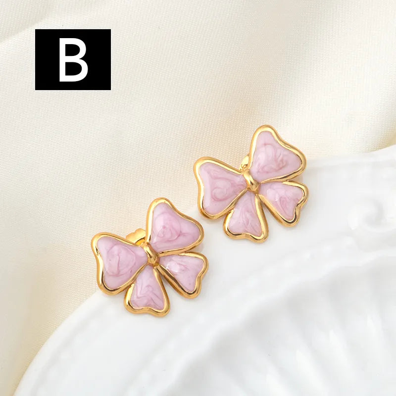 1 Pair Modern Style Classic Style Commute Geometric Bow Knot Titanium Steel Ear Studs