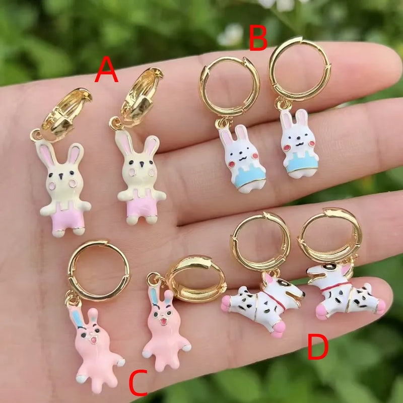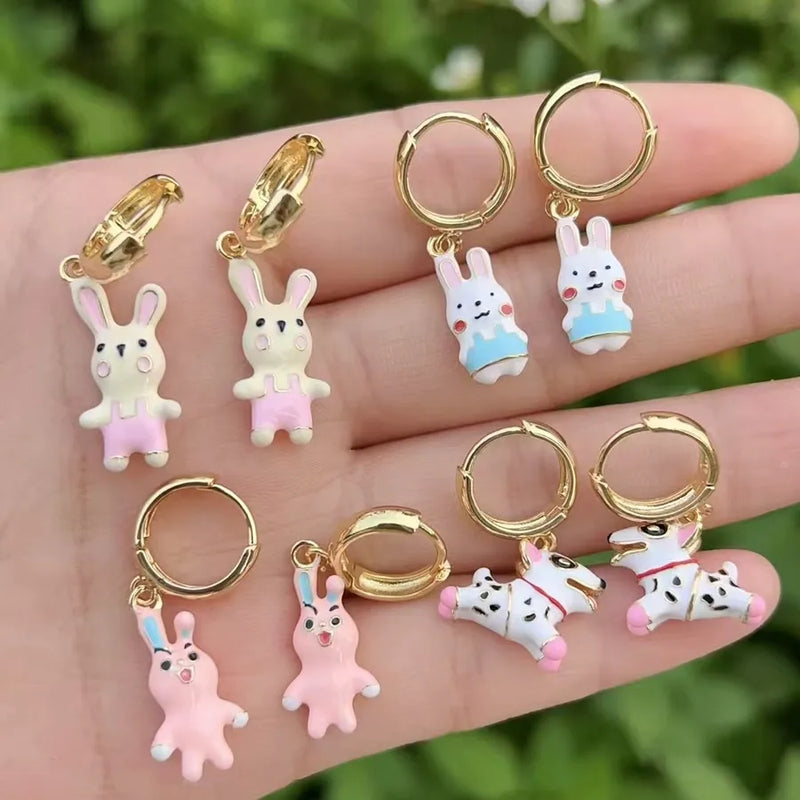 1 Pair/Package Casual Cute Rabbit Dog Polishing Enamel Copper 18K Gold Plated Drop Earrings
