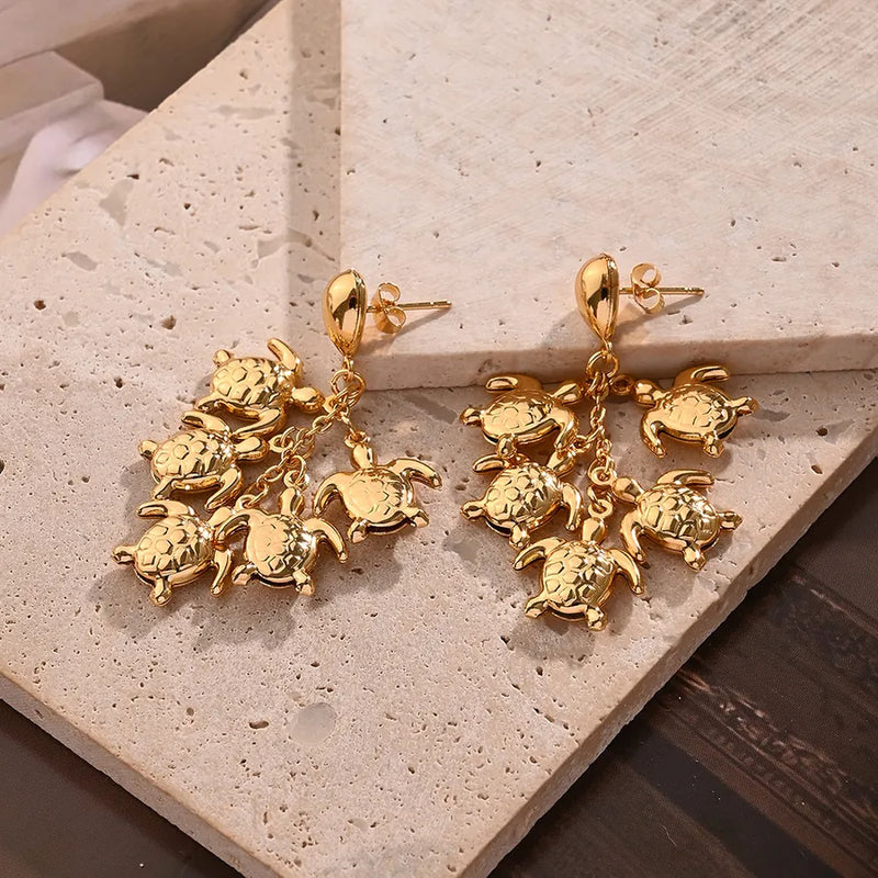 Light Gold Tassel Turtle Stud Earrings (Gold)